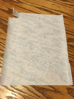 Tip - Save large pieces of excess tear away after you have torn it away. It can be used to easily remove water soluble topping from fabrics. See the Water Soluble section for more information on this method of removal.