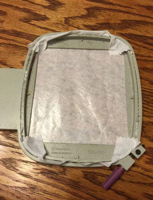 Tip - Use two pieces of cutaway if the design is over 10,000 stitch also rotate one of the pieces 90 degrees so the fibers are opposite